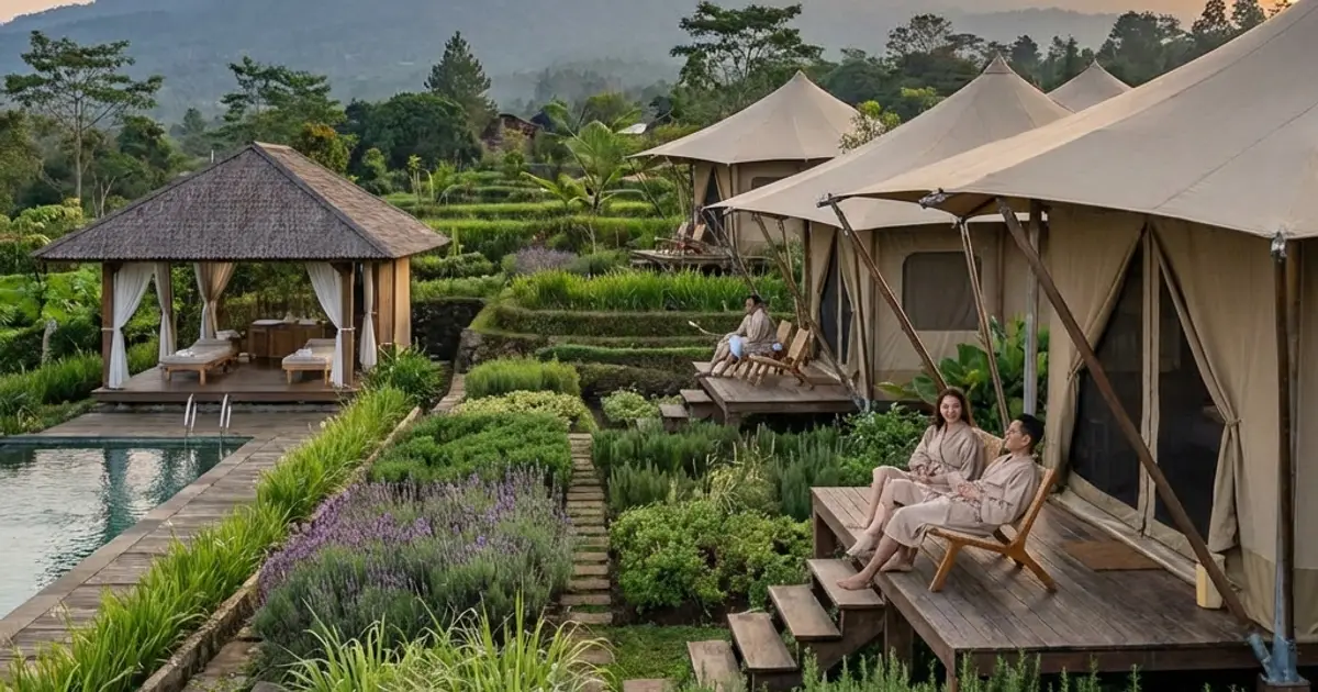 Atsiri Glamping menghadirkan konsep wellness glamping dengan aroma essential oil dan layanan spa. Berlokasi di kawasan Tawangmangu yang sejuk, glamping ini cocok untuk tamu yang mencari relaksasi total. Fasilitas wellness dan menu makanan sehat menjadi nilai tambah bagi pengalaman menginap.